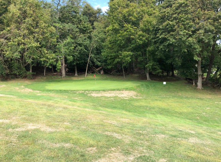At 380 yards, the par 4 7th hole is a deserving number 1 handicap. Although it plays straightaway, this hole features two blind shots with an uphill teeshot over a plateau and a green that’s hidden until the final 50 yards or so at the bottom of the hill. OB lines the right side the entire way with the fairway sloping left-to-right. This green is quite intriguing with a square shape and surrounding rough that is MacRaynor-esque.