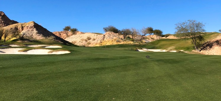 This would be my first desert course and I couldn’t contain my excitement to play Wolf Creek. I had read a lot about the course prior to playing and knew it was a polarizing track, with purists hating its completely manufactured, unwalkable layout and the average golfer loving its exhilarating shots and picturesque views. My initial takeaways of the course were very positive. Regardless of what you think about the layout, credit has to be given to the Riders, amateur architects who created a gem on one of the most difficult properties imaginable to create a golf course. I really don’t think someone like Crenshaw or Doak would touch a property like this and I appreciate their boldness for such an undertaking.