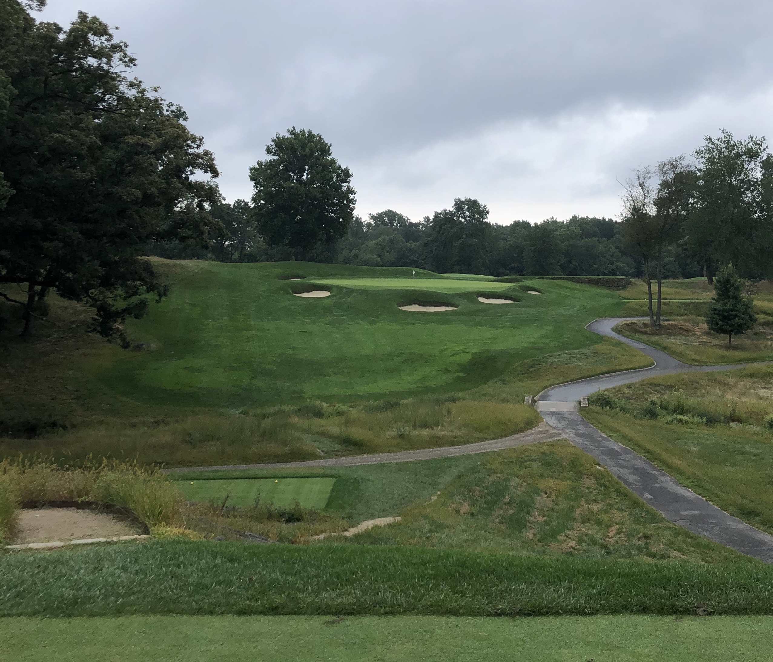 Originally a monster par 5 playing uphill towards the clubhouse that Harry Vardon famously called “cardiac hill”, Wykagyl’s current closer is a shortened but still very challenging 422 yard par 4. This hole begins with a level teeshot through a chute and over a creek at 215 yards to a pancake flat fairway lined by thick forest down the left and a small pond down the right beginning at 260 yards. The green sits well-above the end of the fairway and requires an all-carry approach. It is a small green for a hole of this length and slopes back-to-front with four bunkers surrounding it. While the hole is certainly difficult, it does feel somewhat out of place on the course.