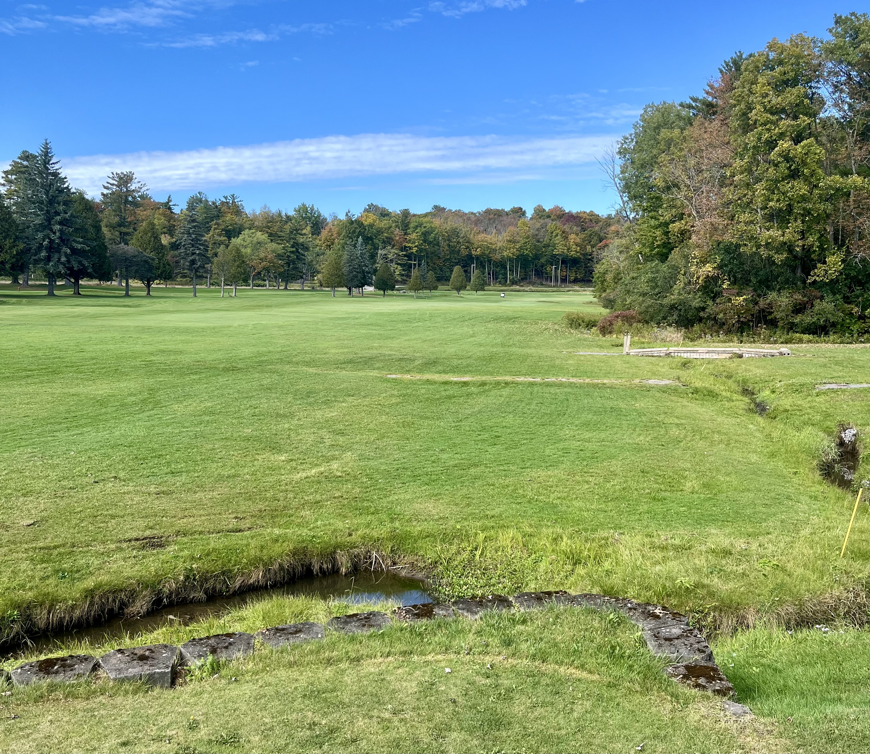 At 271 yards, the 6th hole is almost certainly the most interesting hole on the course as a risk/reward short par 4. From an elevated teebox, this teeshot plays downhill to an initially very generous fairway that ends around 180 yards with a creek. A subtle green then sits back up a hill on the other side of the creek. While the safe play might be a lay-up for the majority of golfers, there’s little danger otherwise over the creek and it is definitely worth going for if you have the distance.
