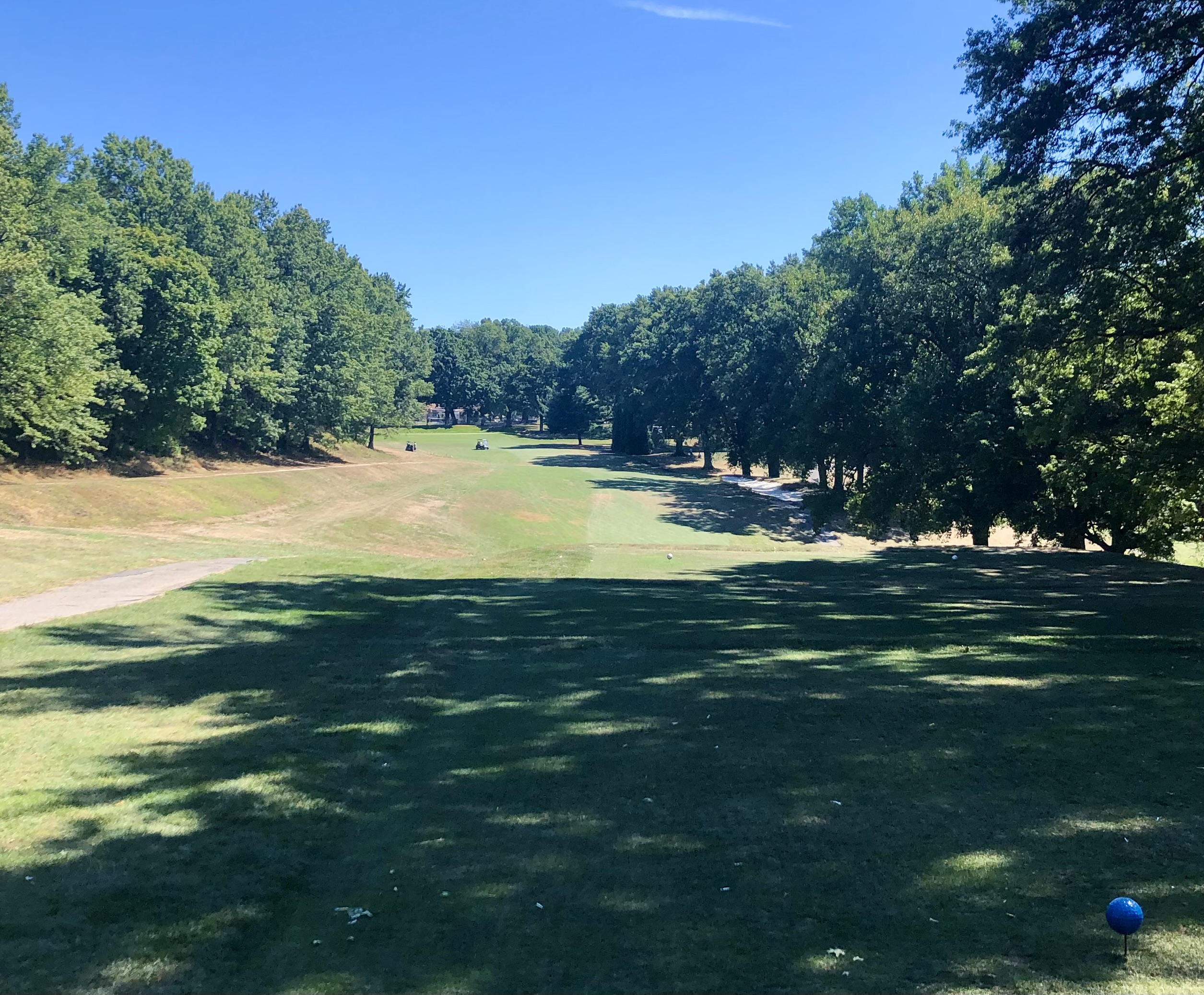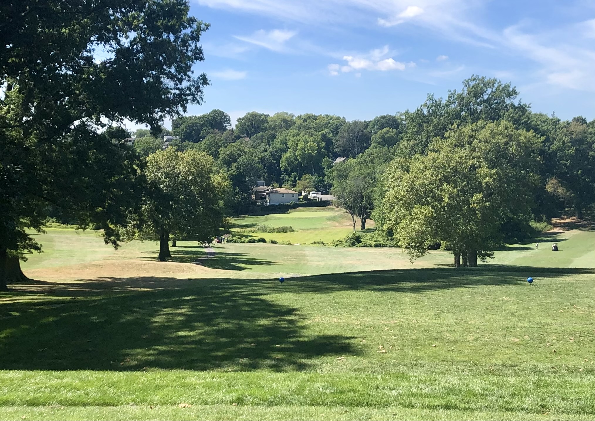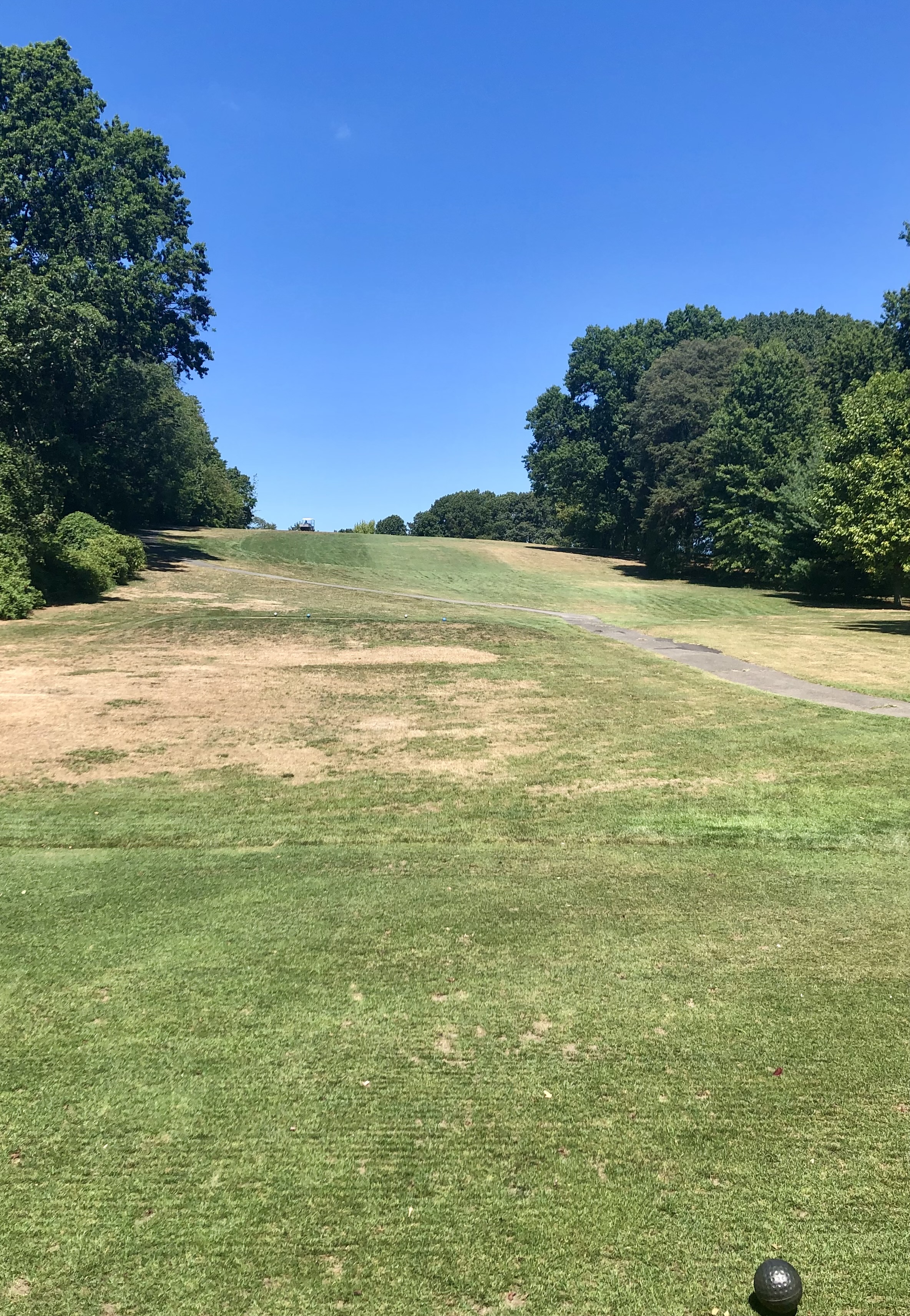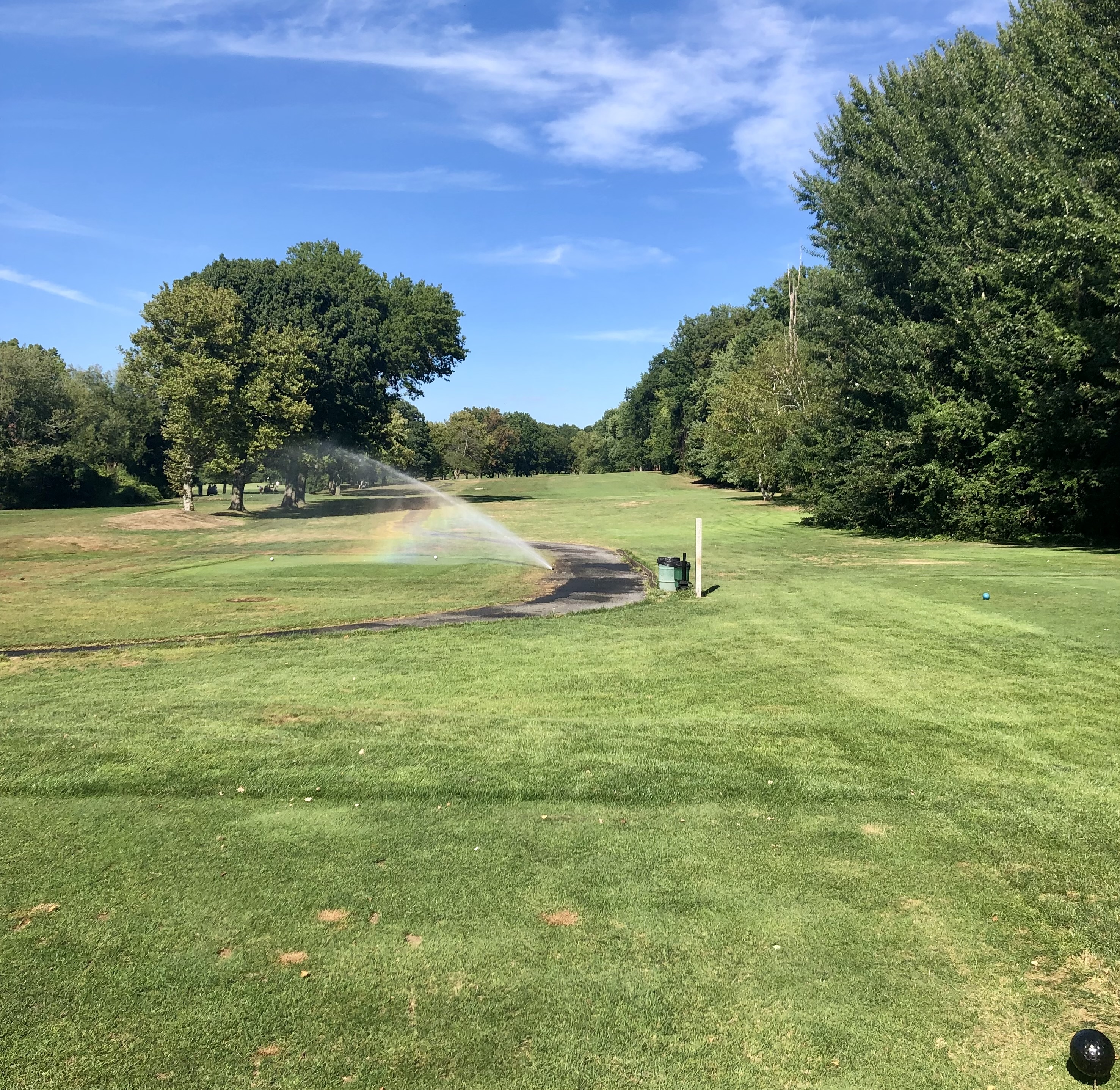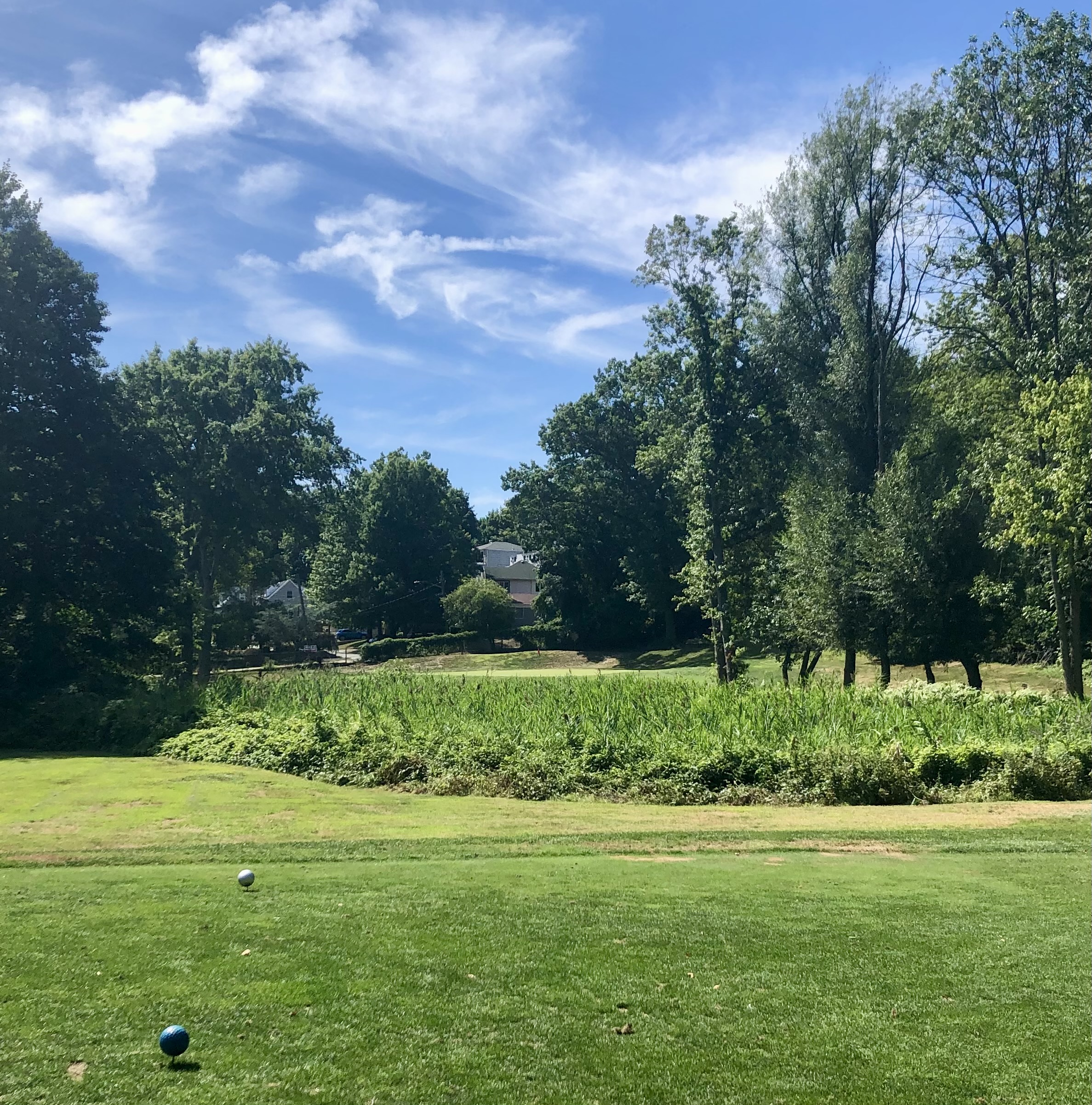 After a bit of an awkward walk down the hill and past the pond, you reach the 6th hole, an 158 yard par 3. This is one of my favorite holes at Silver Lake, playing straight up the hill towards a shallow, diagonal green that slopes back-to-front. Despite the short distance, this green is a small target with big penalties for those whose misjudge the slope.