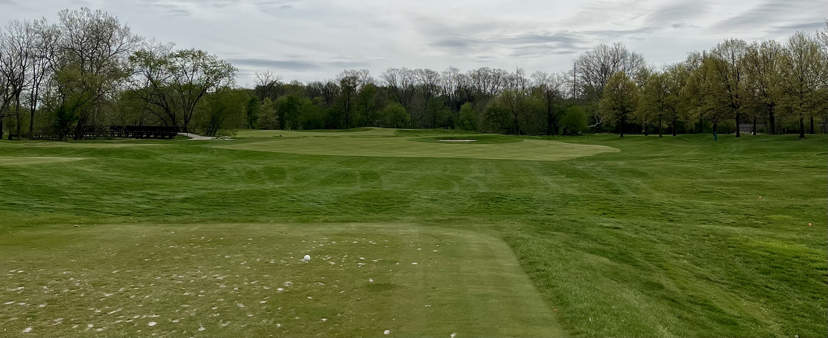 One of the criticisms of White Clay Creek is that it isn’t walkable and this is evident early with a cart path stretching nearly a mile between the 2nd green and 3rd teebox. While this is a bit excessive, it doesn’t bother me too much and the trail is quite peaceful riding alongside White Clay Creek. At 559 yards, the number 1 handicap 3rd hole is the longest on the course and a true marathon par 5. This hole begins with a 200 yard forced carry over marshland to a fairway that begins to turn left. This is probably the widest fairway on the course with the only danger coming in the form of a left crossbunker at 265 yards. This lay-up plays downhill to a narrower fairway with a pond down the right and a pesky left crossbunker about 100 yards short of the green. With about 45 yards remaining, the fairway ends with a ditch and the green sits elevated on the other side of the hazard. It would take two behemoth shots to reach this green in two, which is defended by a large bunker short left and slopes hard towards its front right.