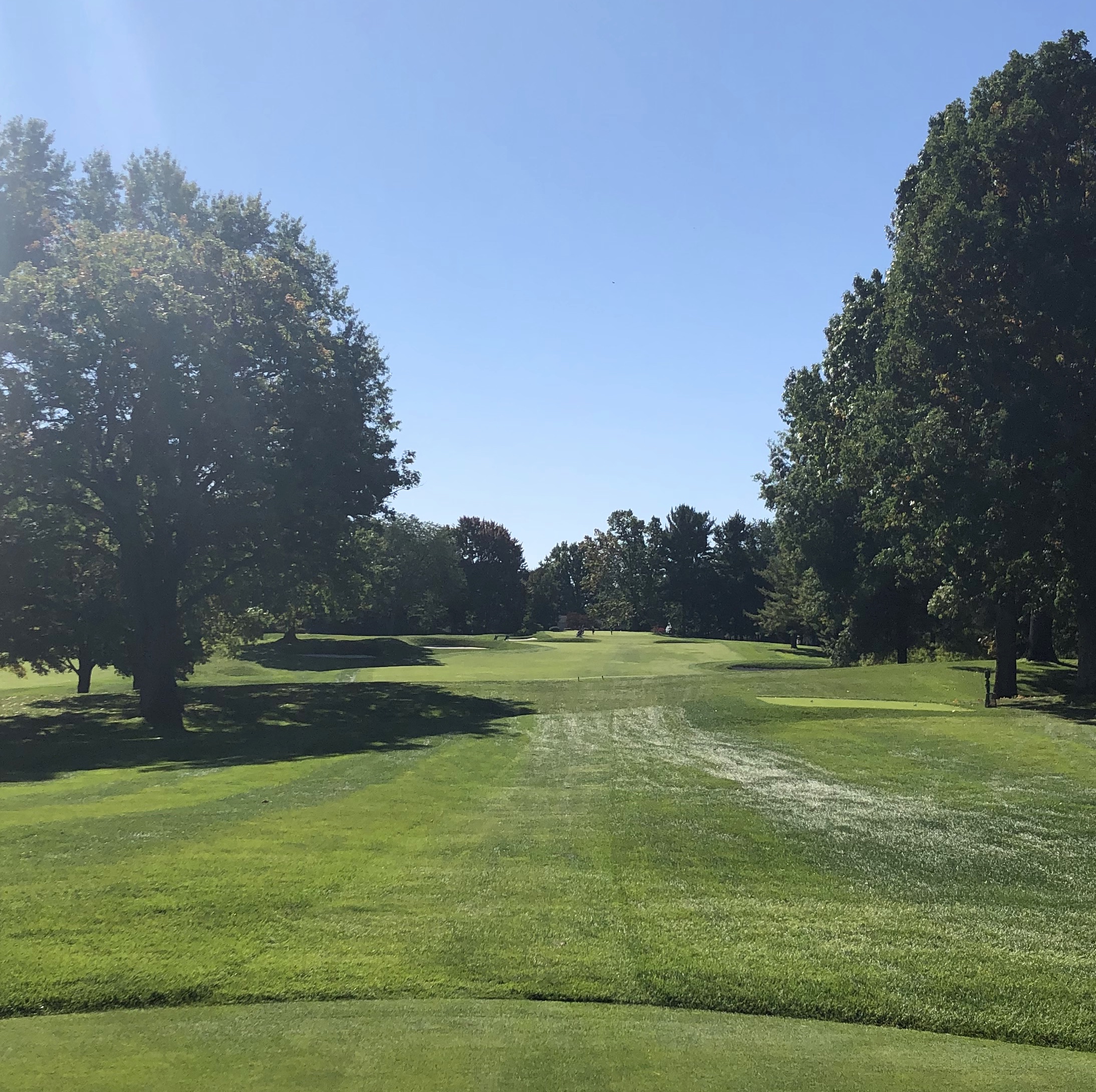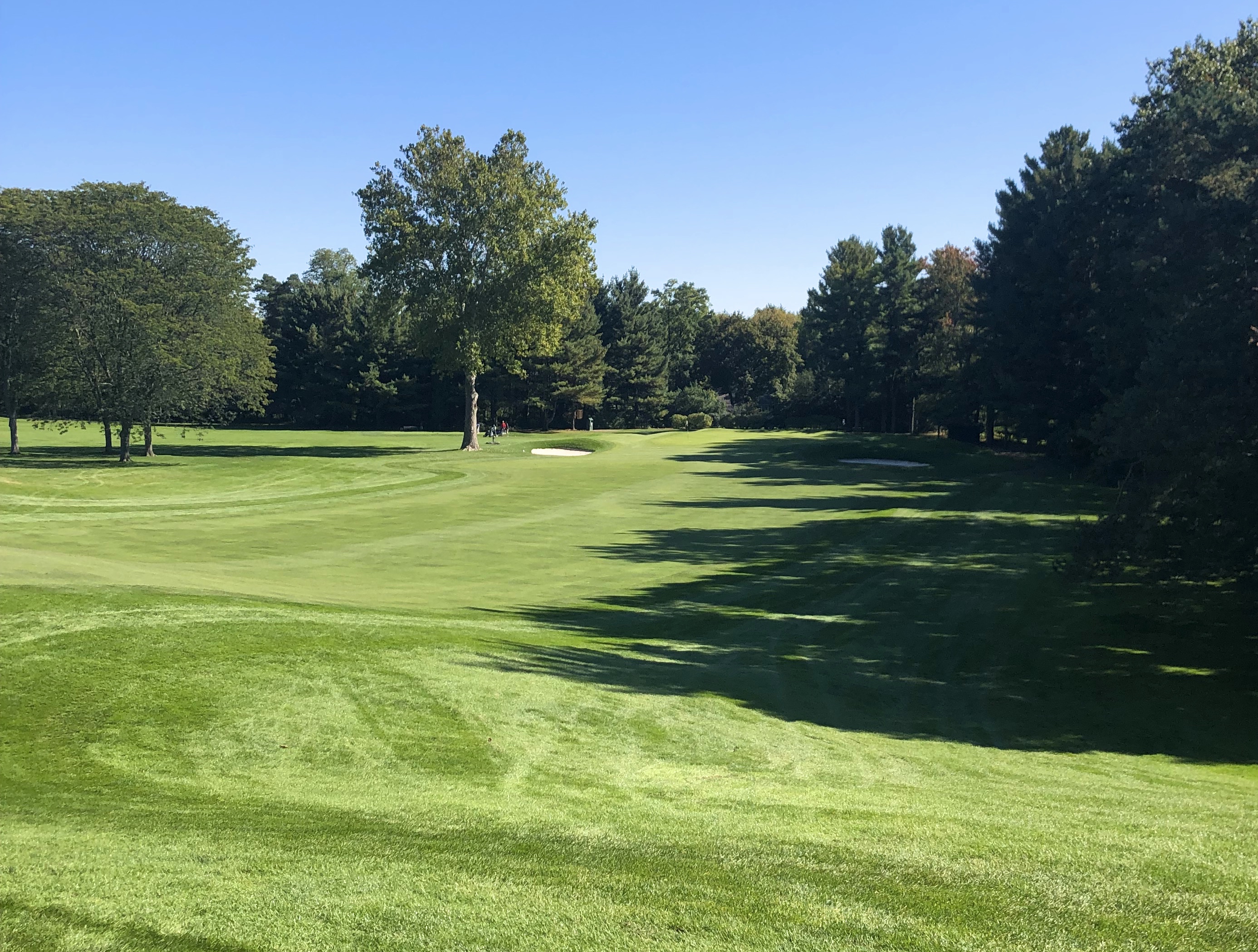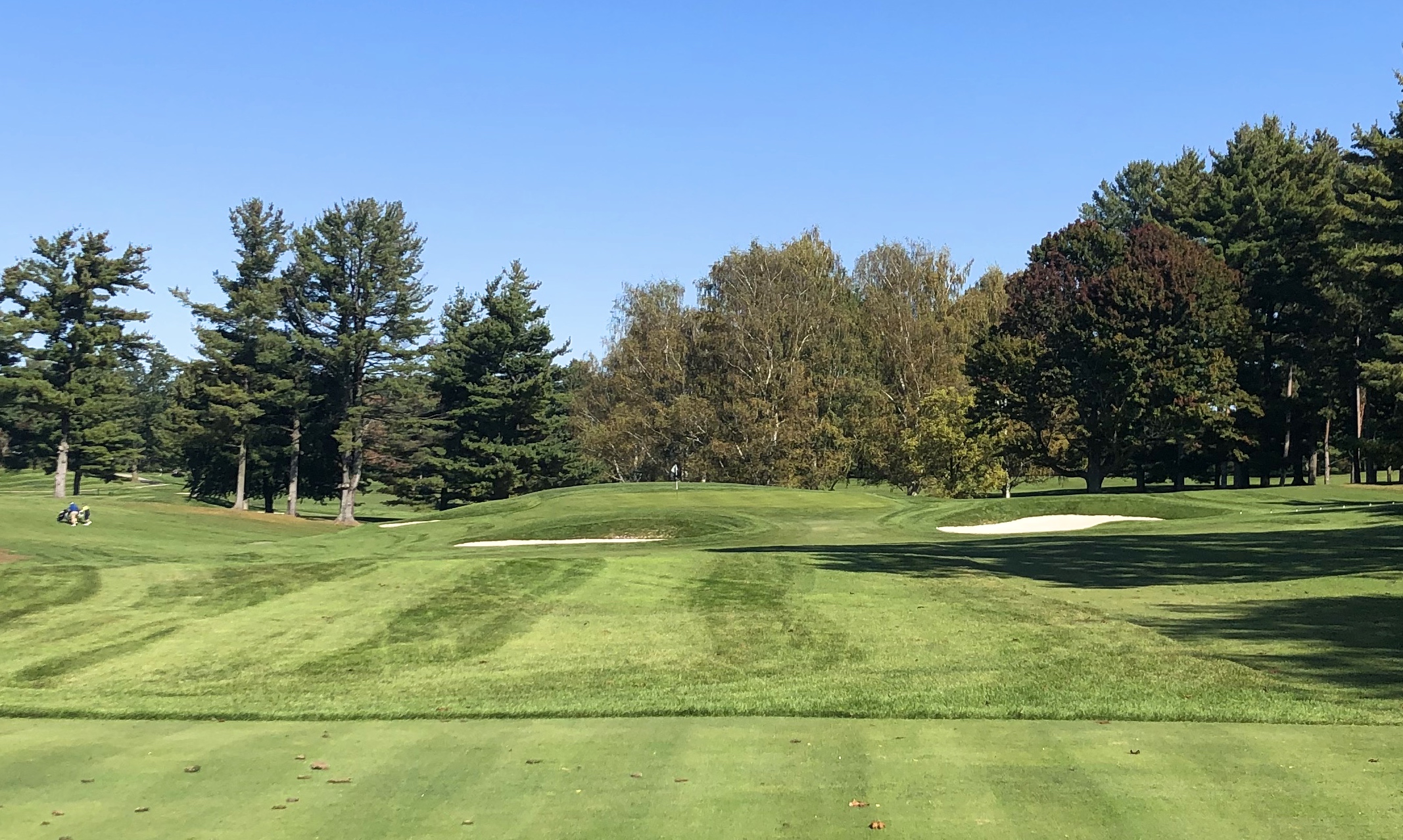 Monroe closes with a difficult 416 yard par 4 that runs uphill and usually into the wind. A straight teeshot is required, with a generous tree-lined fairway defended by numerous bunkers down the right between 200 and 240 yards. While this hole is a tough GIR for most, the most difficult aspect might be the green, which features two tiers and a diagonal swale running through its right half. Par is an admirable score here and I imagine many Monroe Invitationals come down to this hole.