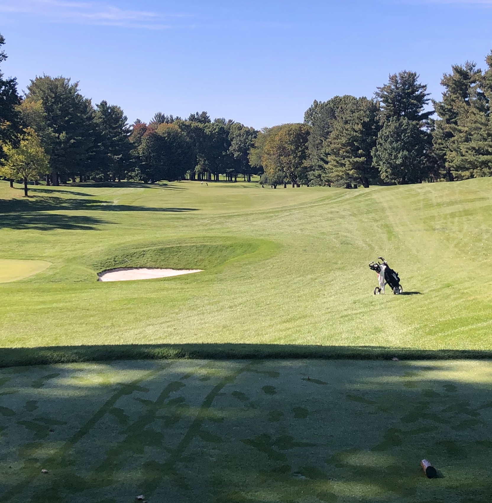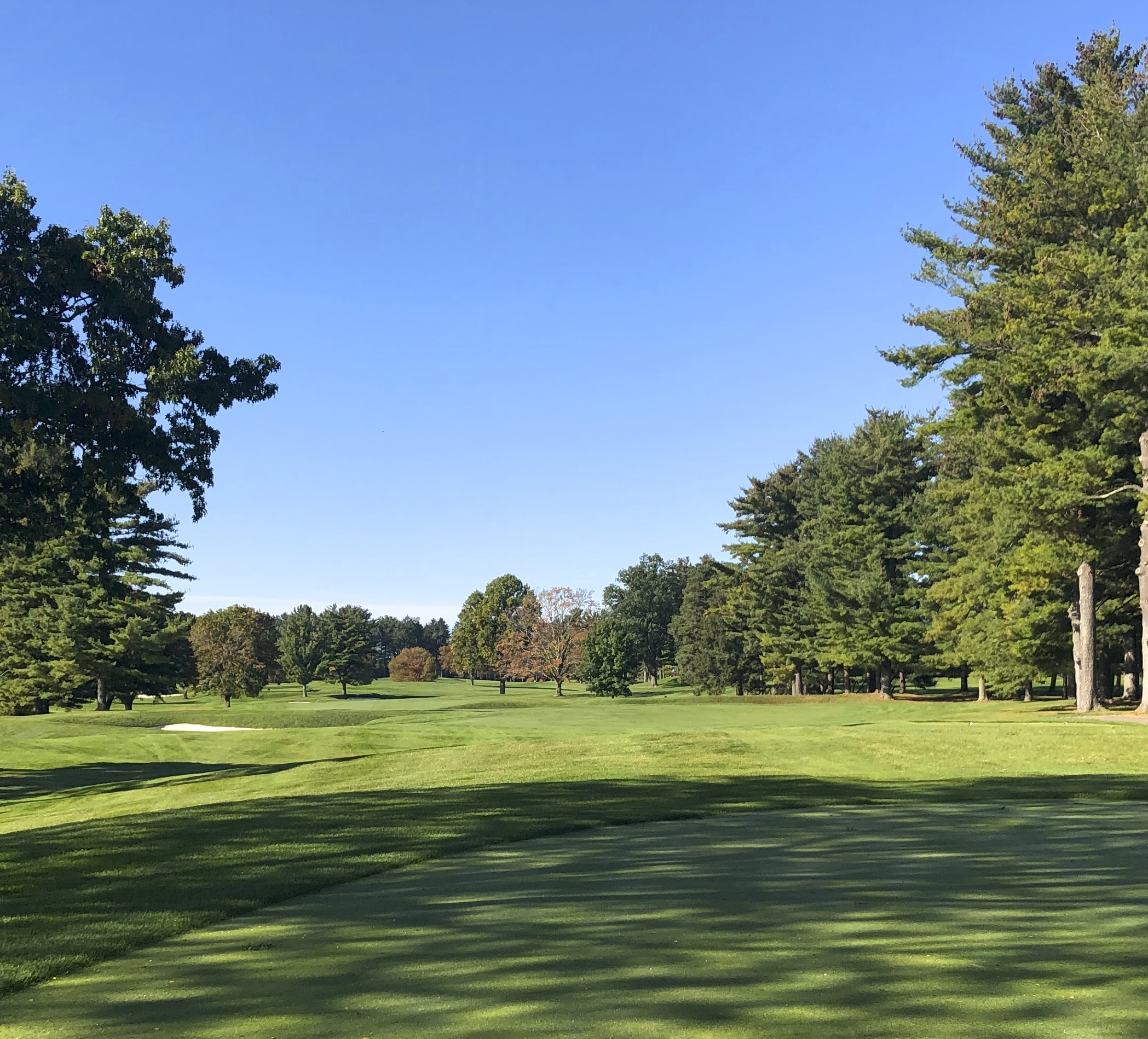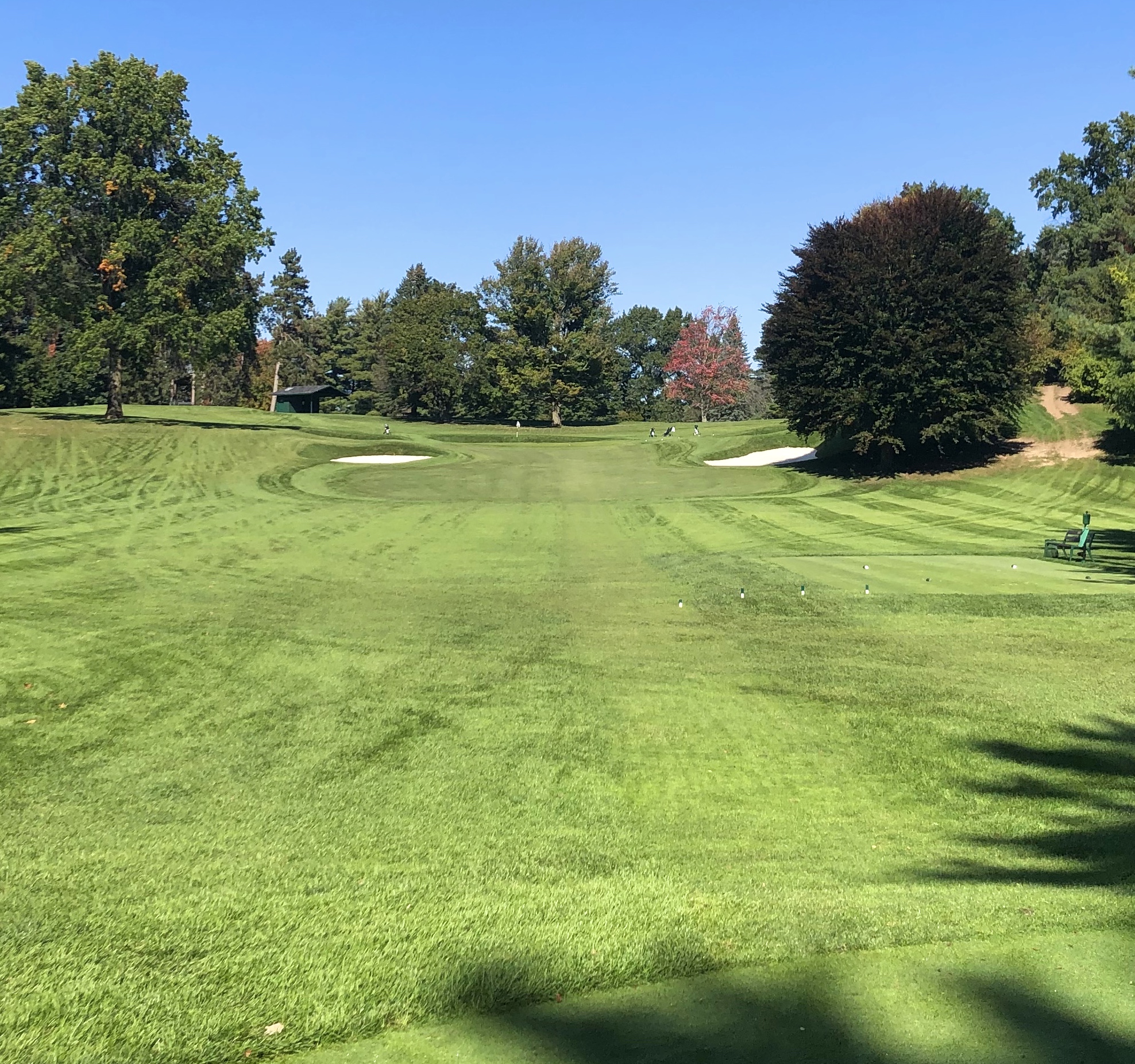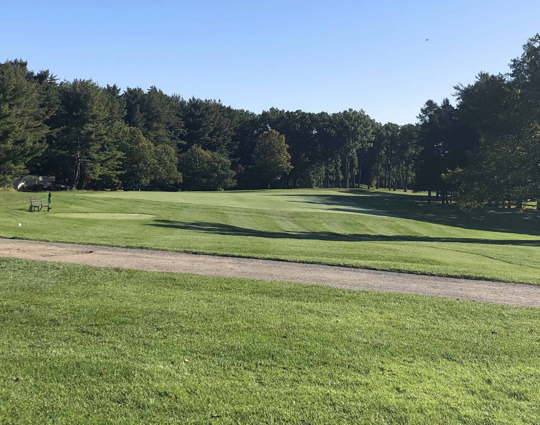 Monroe closes with a difficult 416 yard par 4 that runs uphill and usually into the wind. A straight teeshot is required, with a generous tree-lined fairway defended by numerous bunkers down the right between 200 and 240 yards. While this hole is a tough GIR for most, the most difficult aspect might be the green, which features two tiers and a diagonal swale running through its right half. Par is an admirable score here and I imagine many Monroe Invitationals come down to this hole.